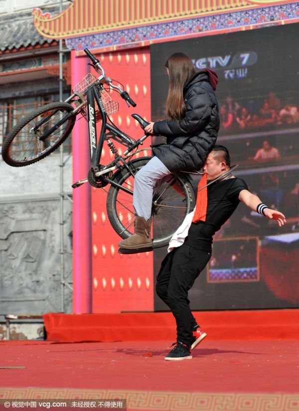 湖北廟會演出:絕技絕活藝人幾乎包羅萬象,任何生產、生活用具以及自然界所能獲取的一切原料都可以成為他們的表現工具。湖北地區…